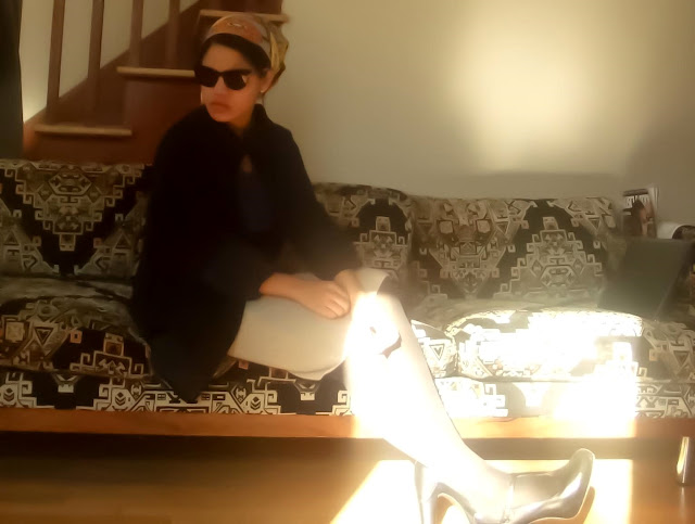 Also, I've worn this sweater/dress/coat so much that it's piling all over. I find that Vince cashmere can be the softest but not the most durable. The J.Crew black sweater, conversely, looks much better with very little any piling. It seems that J.Crew cashmere is better in quality than Vince cashmere is. On the quality talk, the no-name shirt looks brand new. I am almost sure that the shirt came from a department store. To balance the fancy Vince's disillusion, the vintage angora skirt has no piling or any other signs of wear whatsoever. Good to know, eh.